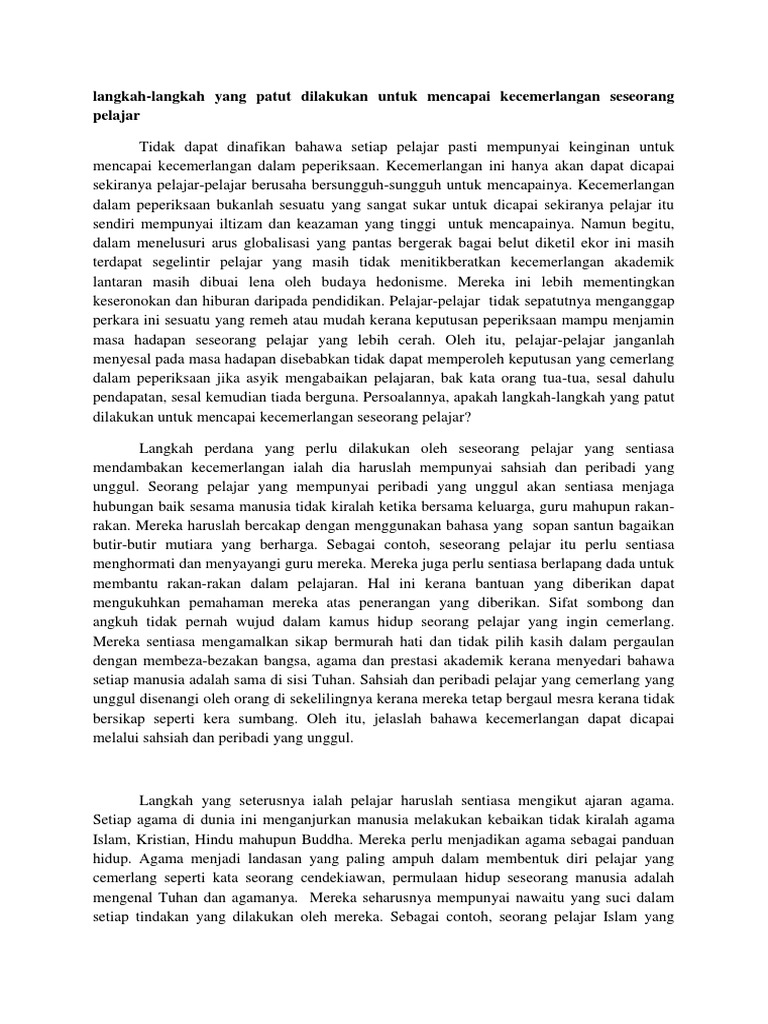 Contoh Karangan 21 Langkah Mencapai Kecemerlangan Pdf
